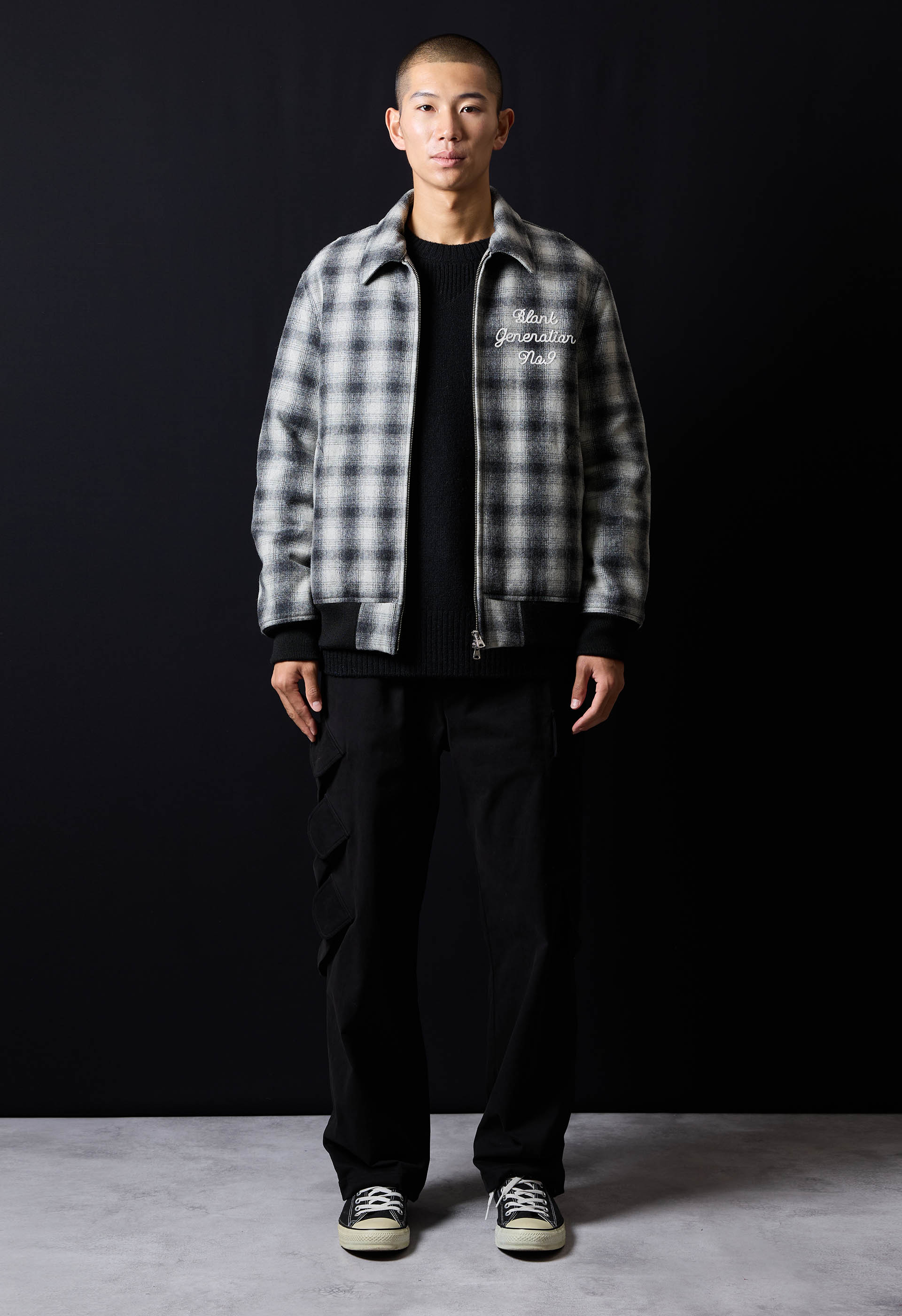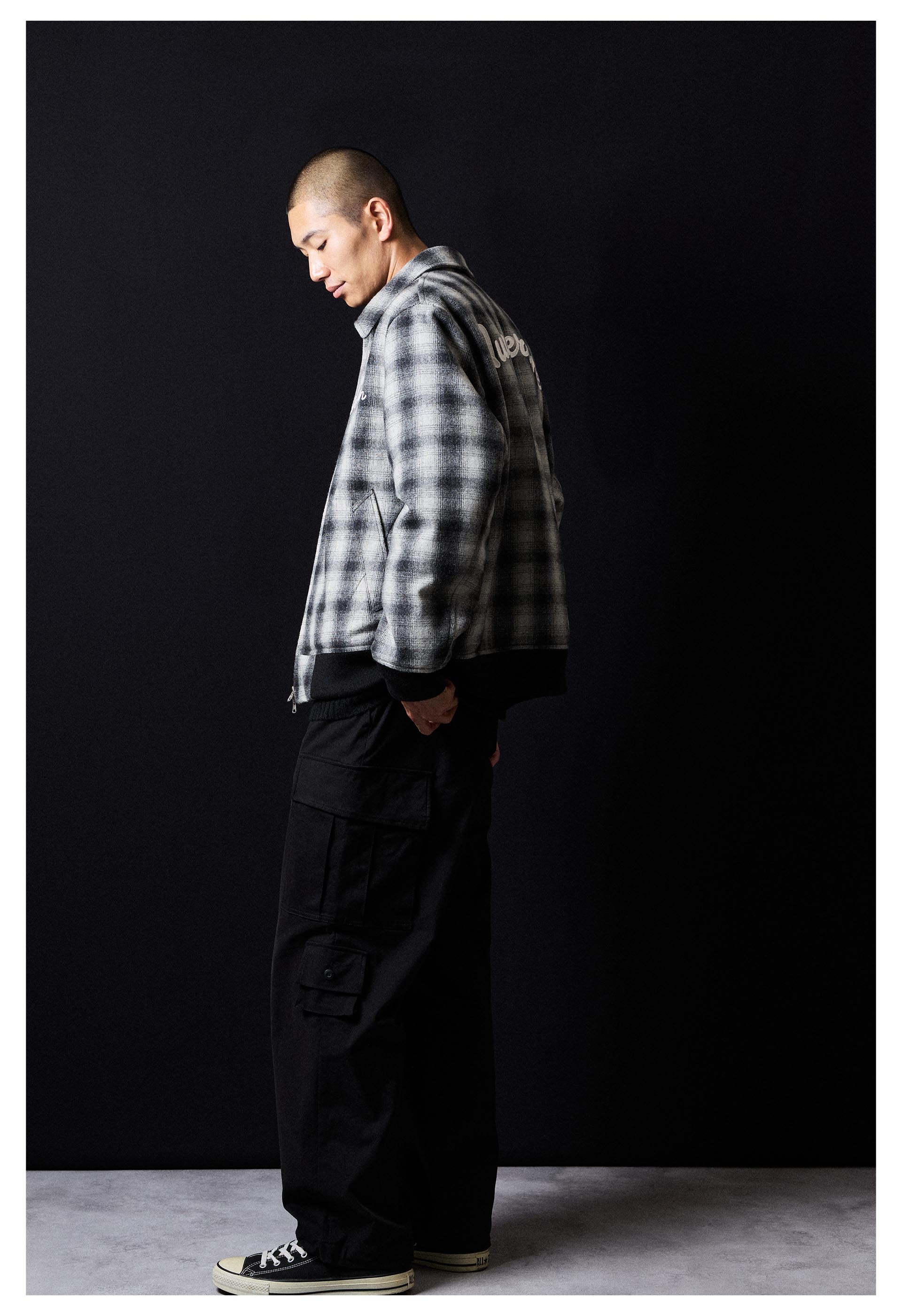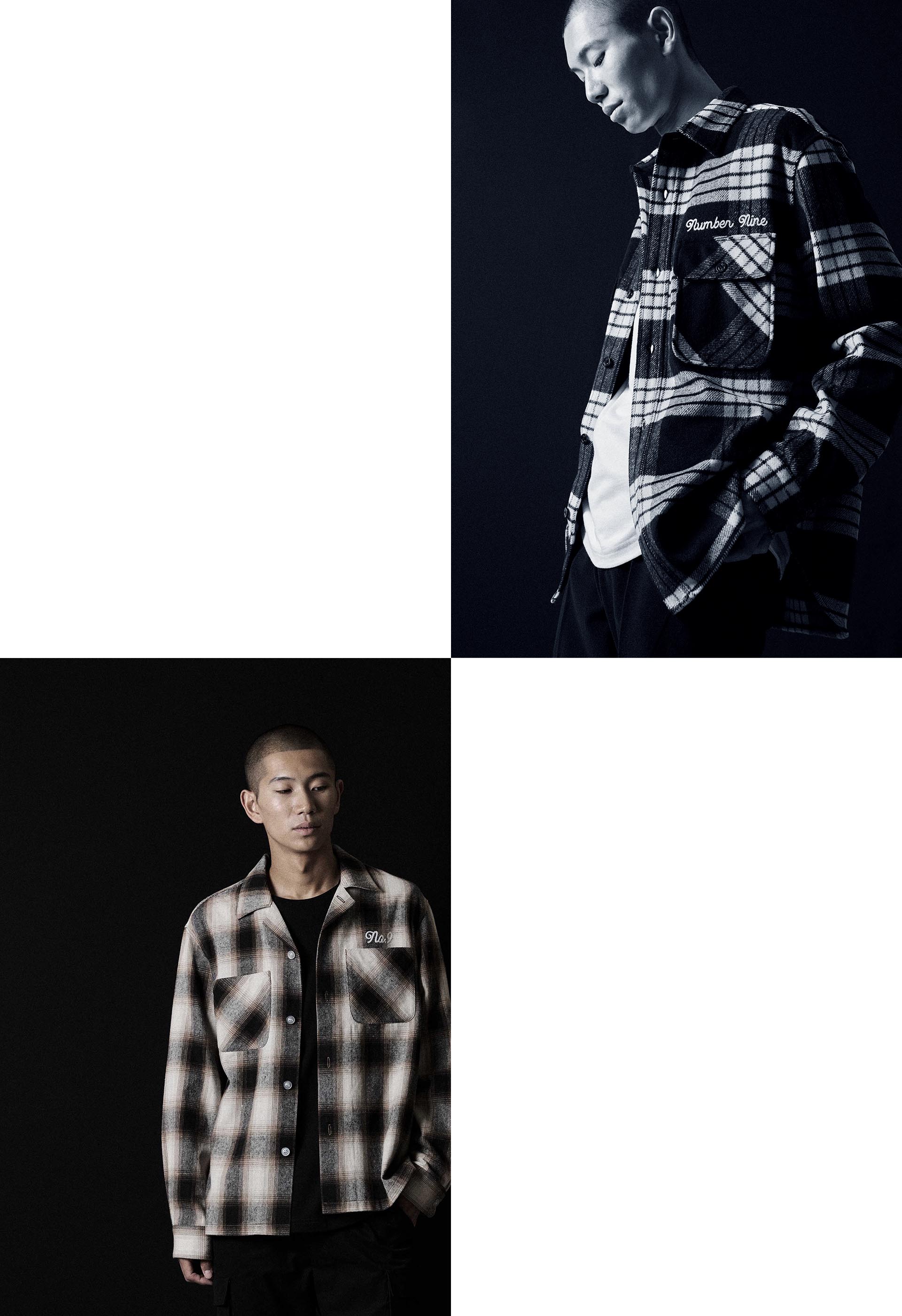 bottom:BRUSHED COTTON OMBRE PLAID FLANNEL EMBROIDERY BACK LOGO OPEN COLLAR SHIRT